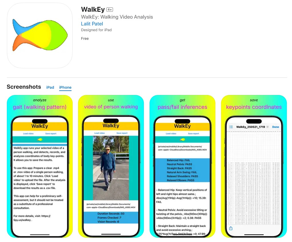 In this iOS app, click 'Load video' to load a video file of about 1-10 minutes. After the app displays its analysis, click 'Save report' to save the analysis as a .csv file.